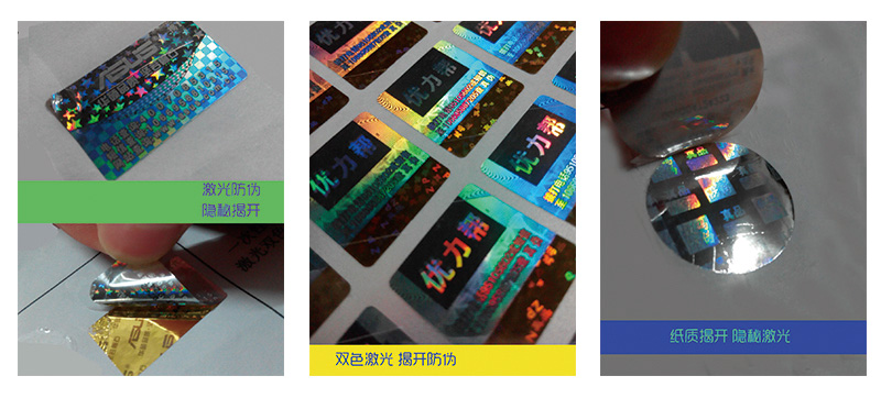 全息镭射激光防伪标签又叫全息防伪标签,是利用激光彩色全息图制版技术和模压复制技术完成的防伪标签,可实现的制版技术有:点阵动态光芒、一次性专用激光膜、3D光学微缩背景、多彩光学随机干涉、中英文铀缩文字等。